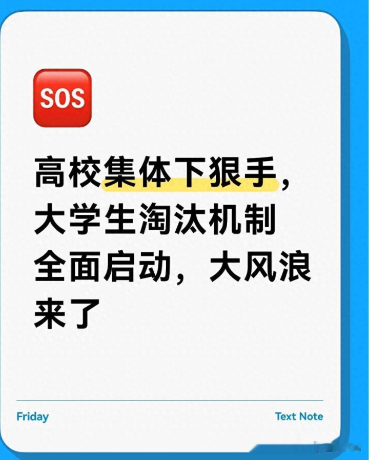 淘汰制标志着高等教育回归育人本质。当学业预警的警钟敲响,当淘汰机制的红线明确,其实是在提醒每一位大学生:大学是成长的练兵场,非休憩的避风港。